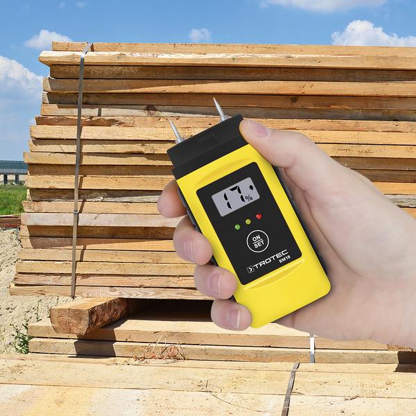 Este modelo permite una conexión sólida con el material y garantiza resultados confiables para la medición de la humedad de: madera aserrada, leña, yeso o solado.