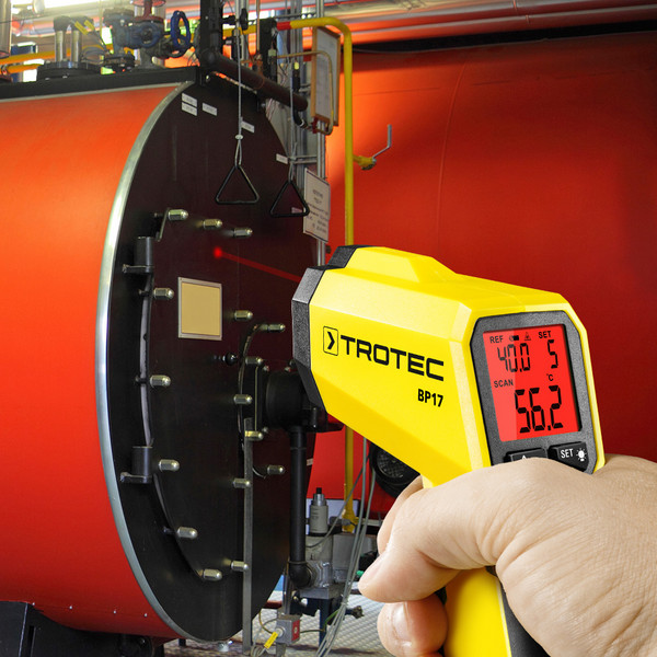 Debido al alto rango de medición de temperatura de -50 °C a +1.000 °C y al principio de medición sin contacto, es ideal para mediciones en lugares de difícil acceso, calientes, móviles o peligrosos.