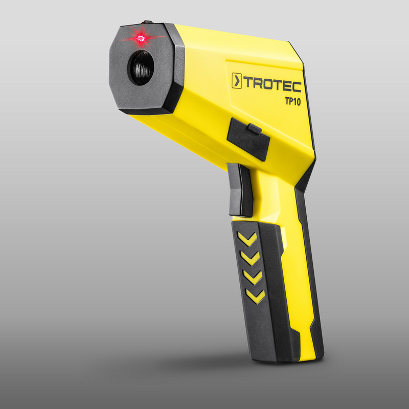 Termómetro infrarrojo para medir la temperatura de superficies sin contacto. Su sensor de infrarrojos proporciona resultados de medición exactos dentro de un amplio rango de temperatura de -50 °C a +380 °C.
